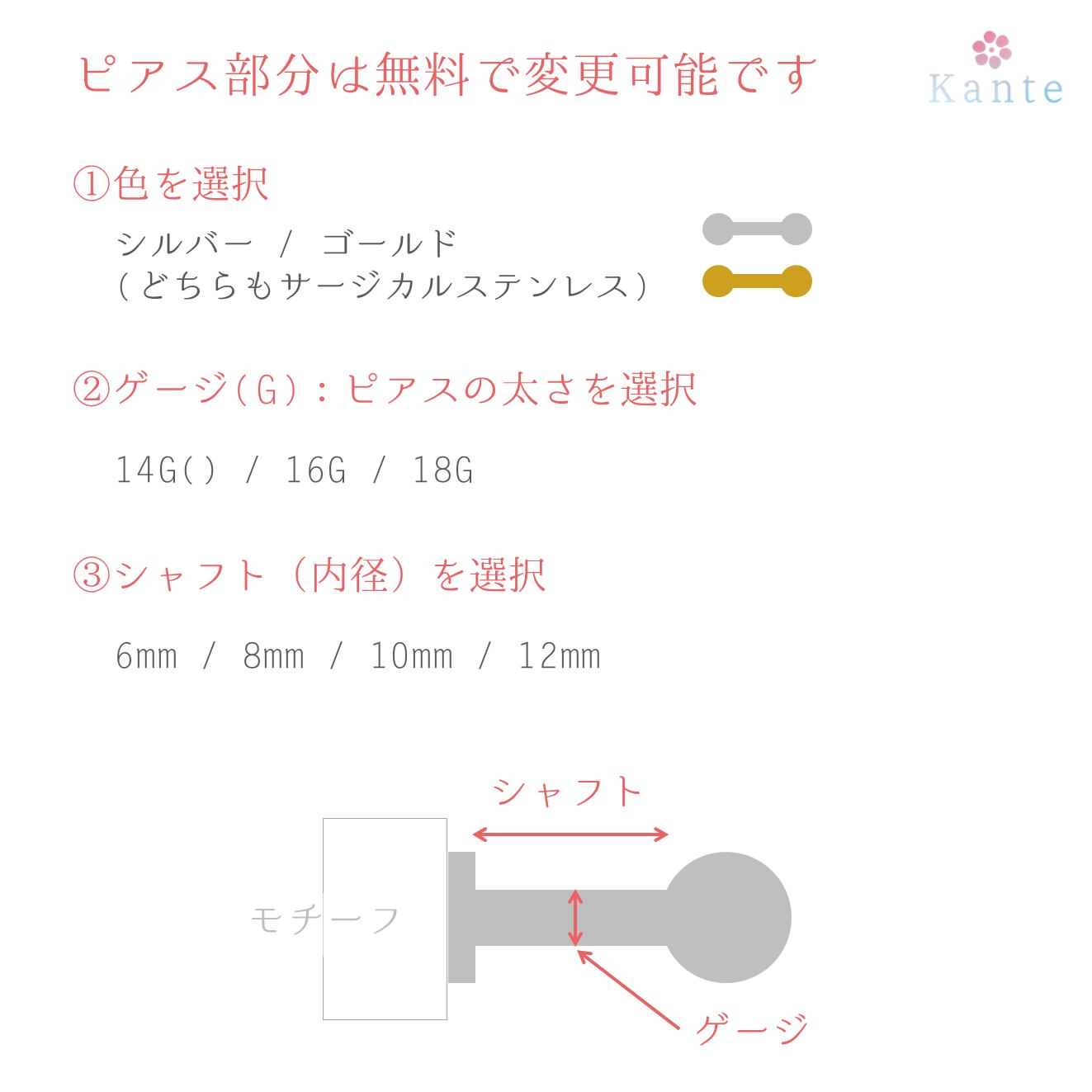 単体のみでも、イヤー(耳たぶ)やほかの部位と重ね付けしてもかわいらしいピアスです。