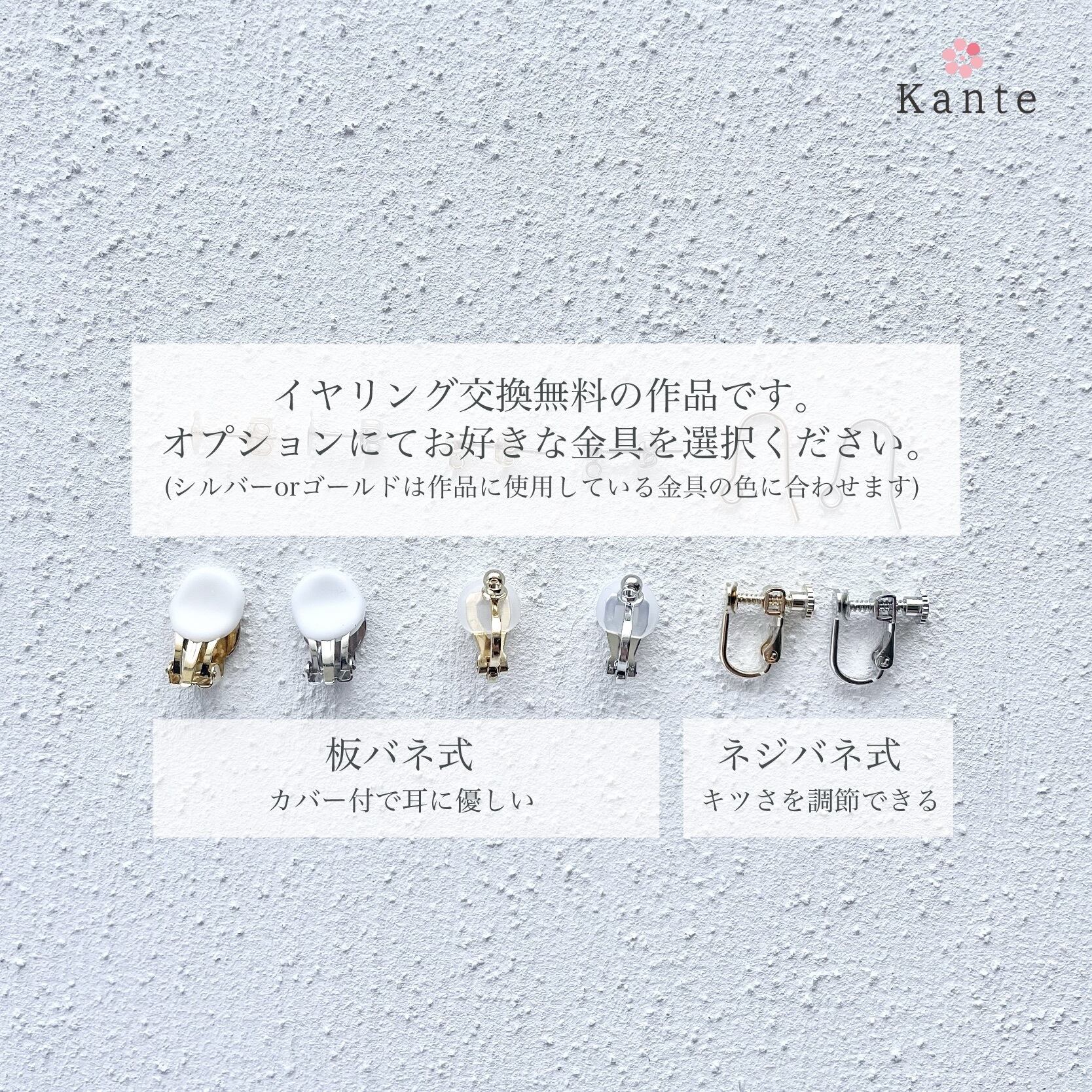 イヤリングは、シリコン製のキャッチが付いた金具にてご用意いたします。
