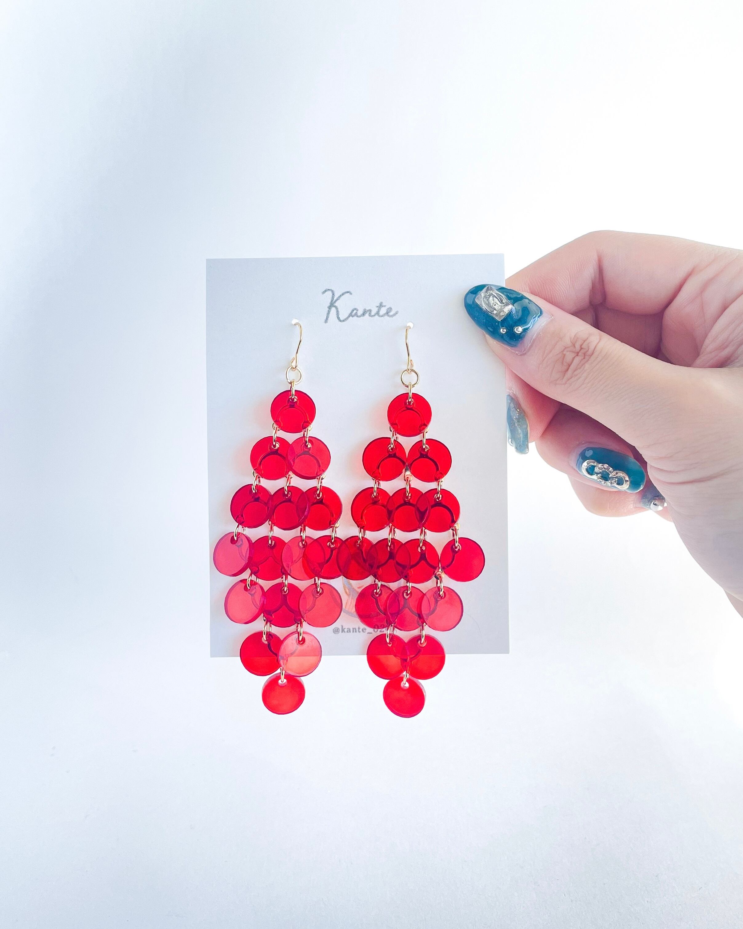 自ら手染めをして仕上げた深いレッドのアクリルを使った