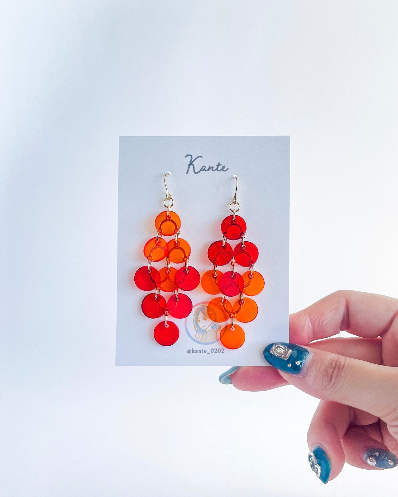 しゃらしゃらピアス(オレンジ×レッド / Small)_人魚のおとしもの アクリルの大ぶりピアス(イヤリング) 小顔 目立つ 派手
